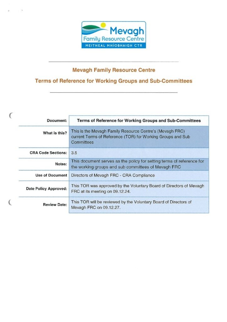 3.5 Terms of Reference for Working Groups and Sub-Committees