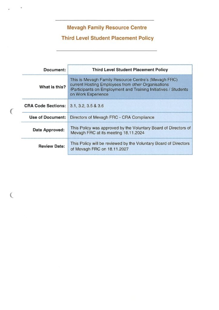 3.1 3.2 3.5 & 3.6 Third Level Student Placement Policy