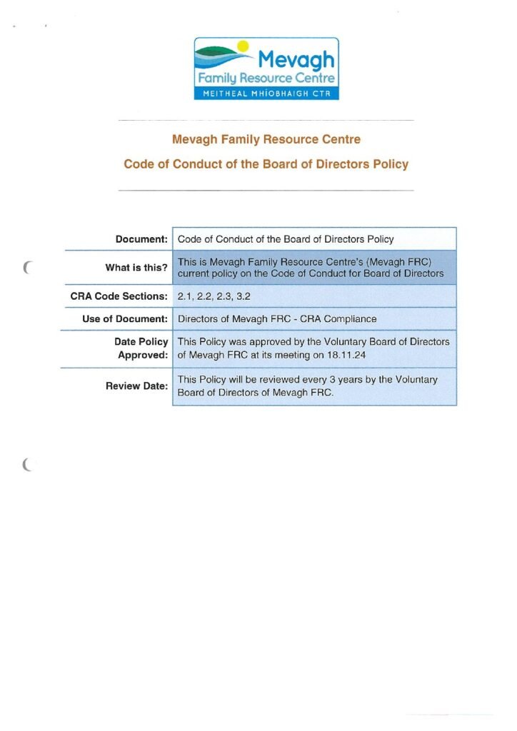 3.2 & 3.6 Code of Conduct for Volunteers Policy
